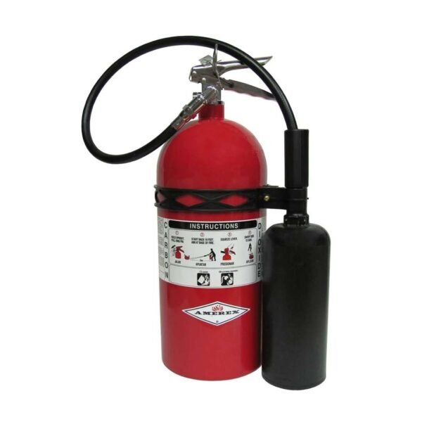 The Carbon Dioxide extinguisher releases a white cloud of “snow” that extinguishes fires by removing oxygen. It is highly effective against Class B flammable liquids and Class C electrical fires, and its non-conductive properties make it safe for use around sensitive equipment like automobiles, computer rooms, and electrical devices. As a clean, odorless gas, it leaves no residue or contamination behind.